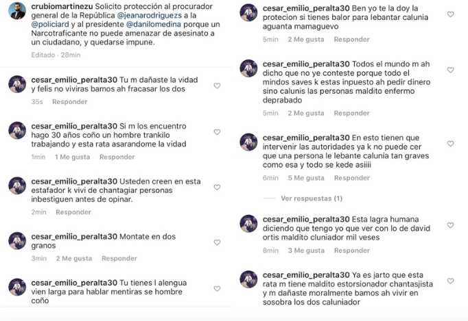La tarde de este miércoles, Carlos Rubio solicitó, mediante sus redes sociales, protección por parte de la Procuraduría de la Republica, en persona del procurador Jean Alain Rodríguez, así como de la Policía Nacional y al presidente Danilo Medina, ante las amenazas recibidas por el César Emilio Peralta.